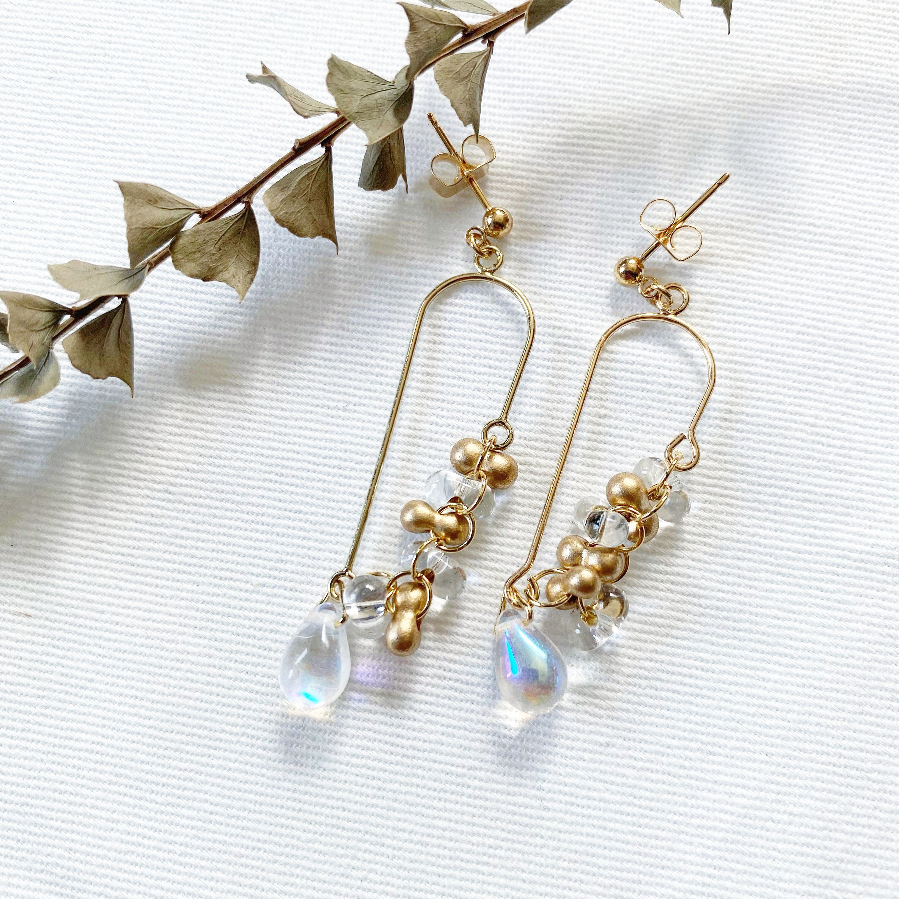 チェコファルファーレビーズを使用した 上品かつユニークなデザインのピアス。 軽やかなつけ心地で夏にぴったりなアクセサリーです。 ※金属アレルギー対応(サージカルステンレス)